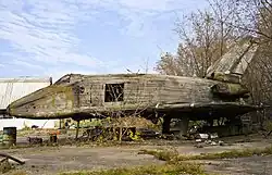 – | nicht fertiggestellt | Verbleib: Seit 2004 unter freiem Himmel in Tuschino in einem Außenlager des Molnija-Werks (nahe Chimki bei Moskau).[18][19][20][21] Am 22. Juni 2011 auf einen Schubleichter gesetzt,[22] um nach einer „Restaurierung“ und dem Zusammenbau auf der MAKS 2013 in Schukowski ausgestellt zu werden.[23] In der Nacht auf den 23. Juni 2011 auf der Moskwa gesichtet.[24] Ausstellungsstück auf dem Gelände der Michail-Gromow-Hochschule für Flugforschung (55° 33′ 47,1″ N, 38° 8′ 49,7″ O).[25] bis nach 5/2013 aber vor 6/2014. |