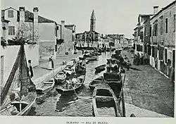 Die forcierte Industrialisierung auf dem angrenzenden Festland (Mestre) machte die überkommenen Erwerbszweige bedeutungslos. Symptomatisch für die völlige Veränderung der Lebens- und Produktionsverhältnisse war die 1907 erfolgte Schließung der letzten Saline in der venezianischen Lagune, von San Felice bei Burano.[10] Diese Salinen waren seit dem Frühmittelalter eines der wichtigsten Fundamente des venezianischen Vermögens. 1924 wurde Burano gegen den Widerstand der Bewohner formal der Großgemeinde Venedig zugeordnet.