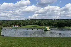 Dieser Umstand war wohl ein Grund für die frühe Besiedelung, hat der Bevölkerung im Laufe der Jahre aber großes Leid zugefügt. Zum einen durch den Zusammenfluss mehrerer Flüsse, als auch durch die Stauwirkung der Schlucht, haben sich immer wieder schwere Hochwasser ereignet. Ganz besonders dramatisch war das Jahr 1965, als Burg sieben Mal überflutet wurde. In den späten 1960er Jahren wurden daher großräumige Hochwasserschutzbauten errichtet. Durch einen Damm, auf dem eine Umfahrungsstraße errichtet wurde, und durch die Verlegung des Tauchenbaches an den Ortsrand gelang es, den Ort hochwassersicher zu machen. Im Zuge dieser Arbeiten wurde auch der Badesee errichtet, der 1972 eröffnet wurde.