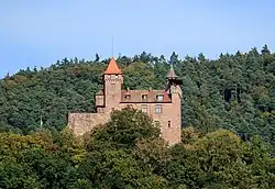 ![]() Burg Berwartstein vom Grünberg (Nordosten) aus | ||