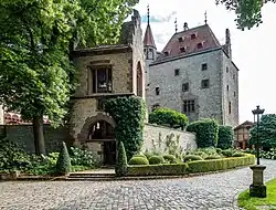 ![]() Burg Calenberg, 15 Jahre nach dem durch Hugo Schuchard als Bauherrn und Heinrich Wiethase als Architekten durchgeführten Umbau. Lithographie 1899 | ||