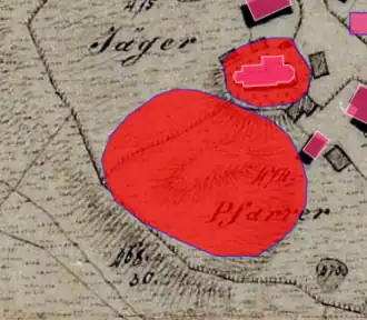 Lageplan von Burg Dünzelbach auf dem Urkataster von Bayern | ||