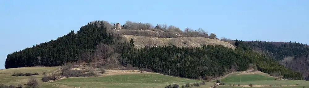 Burgareal an der Nordwestecke des Fürstenbergs, im Hintergrund die 1964 errichtete Augustinus-Kapelle | ||