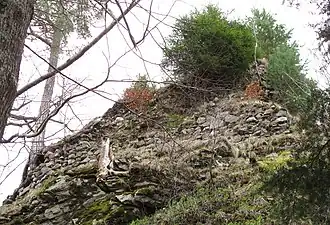 Burgfelsen mit Ruinenresten auf dem oberen Burgplateau | ||