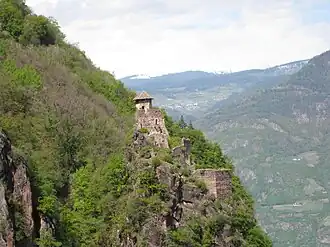 - ↑ Helmut Rizzolli: Vom Felsenschloss zur romantischen Ruine. In: WIR – Die Bezirkszeitung im Überetsch & Unterland. Nummer 3, März 2012, S. 16–17.