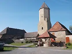 ![]() Bergfried von 1200, Hofseite | ||