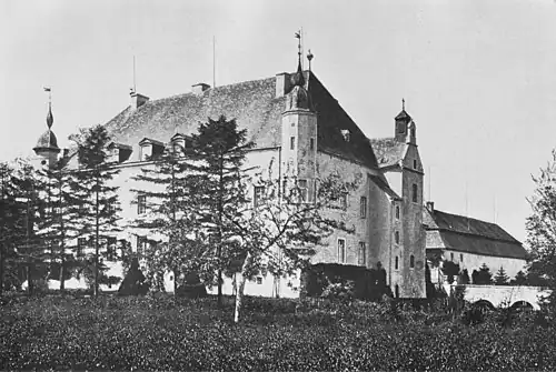 Sie war Stammsitz eines gleichnamigen Adelsgeschlechts und kam im 14. Jahrhundert an eine Linie der Familie von Merode, die bis zu ihrem Aussterben 1826 Besitzerin blieb. Von 1840 bis ins 20. Jahrhundert war die Industriellenfamilie Cockerill Eigentümerin des Anwesens. Ihr gehörte auch das nur etwa einen Kilometer nordwestlich liegende Haus Palant. Nach starken Beschädigungen im Zweiten Weltkrieg wurde die Anlage mit Ausnahme der südlichen Vorburg niedergelegt.