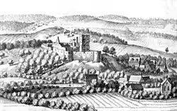 ![]() Burghügel aus dem Burggraben gesehen | ||