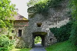 Der im Kern mittelalterliche Torbau verfügt über zwei spitzbogige Portale aus Bruchstein und war ebenfalls mit einer Zugbrücke ausgestattet. Einige Meter nach dem inneren Torbogen liegt ein weiteres, barockes Ziegelportal, über das man in die Vorburg gelangt.