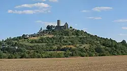 - ↑ a b c Foto der Informationstafel zur Burg, auf commons.wikimedia.org