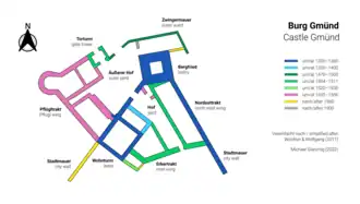 - ↑ Ronald Woldron und Christiane Wolfgang: Gmünd: Burg und Stadtbefestigung. Bauhistorische Untersuchung. 2011, S. 5.