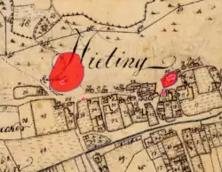 Beide Burgteile werden durch einen verflachten Abschnittsgraben getrennt. Auch der Halsgraben vor der Vorburg ist weitgehend verebnet.