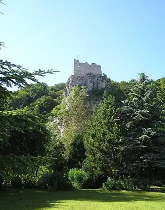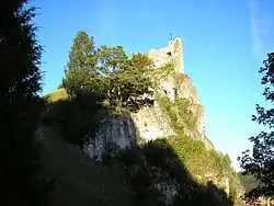 ![]() Burgruine Hütting – Ansicht der Ostseite | ||