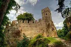 Die Zinnenringmauer und der Bergfried sind erhalten. Im Zwinger befindet sich der Brunnen, dessen Tiefe noch 30 m beträgt. Im Burgtor sind zwei große Wappenschilde eingefügt, die heute stark verwittert sind. Eines stellt das Wappen der Herren von Wlašim mit zwei Geierköpfen dar. Das andere, mit einem Querbalken versehene, ist das des Erzbistums Prag.