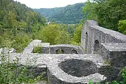 ![]() Der Hauptbau der Burg Herrenzimmern | ||