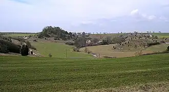 ![]() Der Burgberg in der Schleife des Kesselbaches | ||