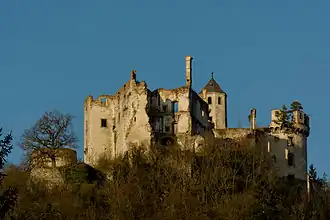 - Die Burgruine Hohenegg auf der Seite der Gemeinde Hafnerbach