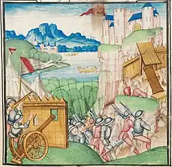 Die Darstellung von Grimmelshausen aus dem Jahr 1645 galt lange als älteste bekannte Darstellung. 2001 wurde die Hypothese publiziert, dass eine Darstellung im Kriegsbuch des Philipp Münch[5] von 1496 die Burg Hohengeroldseck während der Belagerung durch Philipp den Aufrichtigen im Jahre 1486 zeigt.[6]