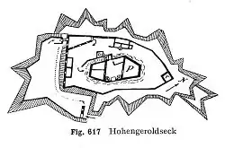 - ↑ Otto Piper: Burgenkunde. Bauwesen und Geschichte der Burgen. Nachdruck der Ausgabe 1912. Weltbild-Buchverlag, München 1992, Ausbau der Burg Hohengeroldseck 1693: Bild 617 auf S. 615, ISBN 3-89350-554-7.