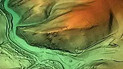 Vertiefung, vermutlich ein Gebäudekeller oder ein Turmfundament