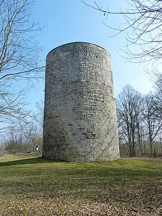 Auf dem Burggelände und an dem weithin sichtbaren Turm befinden sich Erläuterungstafeln.