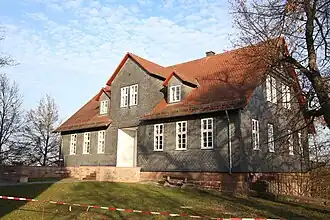 Gebäude, das 1830 auf dem Wohnturm (erhaltene Grundmauern) der Burg errichtet wurde[1] | ||