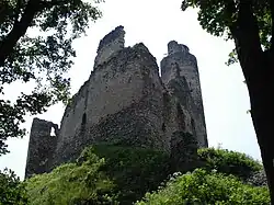 - Die Burg Kostomlaty ist von der gleichnamigen Gemeinde aus über eine grün markierte Wanderroute zu erreichen.