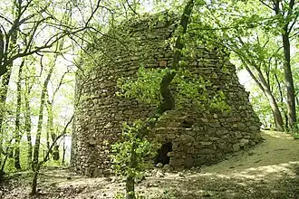 Erhalten sind ein fünf Meter hoher halbrunder Stumpf des Bergfriedes und der Burggraben.