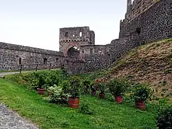 | Bauweise | Bruchstein (Basalt), Buckelquader (Sandstein) | |
