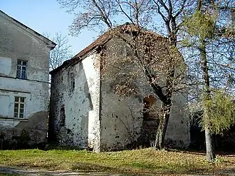 Das verlassene Herrenhaus (links) und der Burgturm (rechts) -