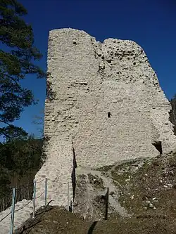 Die relativ kleine Burganlage bildete ein unregelmäßiges Viereck ohne Bergfried. Die Anlage wurde durch eine mächtige, heute noch 15 Meter hohe und an ihrer Basis 4,7 Meter starke Schildmauer im Westen geschützt. Ein künstlicher Halsgraben trennte die Burgstelle vom Berg. Von der ehemaligen Burganlage ist neben wesentlichen Fundamenten der Kernburg und den Resten einer vorgelagerten vermutlichen Zwingeranlage noch die mächtige Schildmauer erhalten.