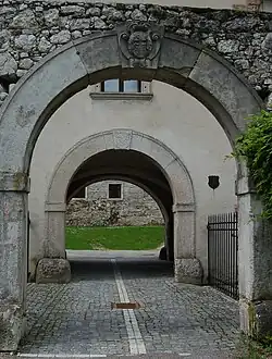 Der langgezogene östliche, inzwischen gut erhaltene Trakt umfasst zwei Geschoße und diente als Wohnschloss. Oberhalb des Tores erhebt sich ein viergeschoßiger Torturm.