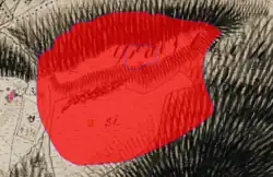 ![]() Der Petersberg von Flintsbach aus gesehen, davor Rachelwand und Burgstall der Rachelburg. | |