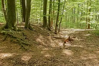 ![]() Wall und Graben der Burg Ordenberg im Norden | ||