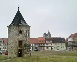 Die Burg entstand als Niederungsburg in unmittelbarer Nähe der Bode. Sie war mit Wällen und Wassergräben versehen. Die früheste urkundliche Erwähnung stammt aus dem Jahr 1205, wobei die Burg älter sein dürfte. Neben einer Kernburg gab es nördlich davon eine Vorburg, die später als Wirtschaftshof genutzt wurde.