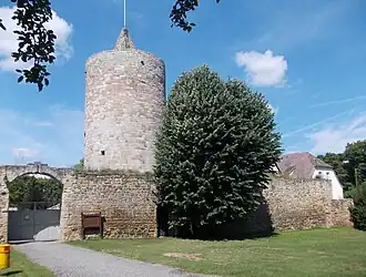 Von der ursprünglichen Anlage erhalten blieben der Bergfried mit dem im Volksmund als „Matzturm“ bezeichneten Rundturm und einem spitzbogigen Portal sowie Mauerreste. Das Burggelände wird heute als Grundschule genutzt[1] und ist nur eingeschränkt zugänglich.