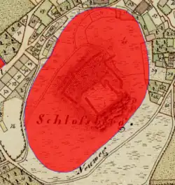 | Erhaltungszustand | Wenige Mauerreste und die Überreste von zwei Rondellen im ehemaligen unteren Burghof | |