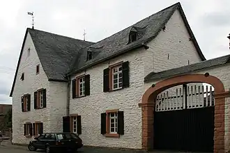 Das zweiflügelige nicht unterkellerte Herrenhaus zeigt hohe spitze Giebel und Reste von Kreuzstockfenstern und Fenster aus dem 18. bis 19. Jahrhundert aus Sandstein. Die mit Bruchstein gemauerten Wirtschaftsgebäude tragen Satteldächer. Das Nachbargebäude gehörte teilweise zur Burg. Am 17. Dezember 1984 wurde das Gebäude als Denkmal eingetragen.