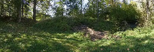 Der Burghügel ist in etwa 4 m Tiefe von einem System von Gängen mit einer Länge von insgesamt 160 m durchzogen. Diese sind aus dem Konglomeratgestein herausgehauen worden und mannshoch. Erhalten waren Lichtnischen sowie Schlief- und Luftlöcher. Eingänge hierzu fanden sich an der Nordwestseite bei der Salzach und an der Südostseite landwärts. Diese Gänge erinnern an sogenannte Erdställe, wie sie eher für Oberösterreich typisch sind. Der salzachseitige Eingang ist bereits vor dem Ersten Weltkrieg eingestürzt. Der andere Eingang wurde noch mit Pfosten gestützt. Nach dem Ersten Weltkrieg stürzte aber auch hier der äußerste Gangteil ein und man konnte nur mehr über den Schutt kriechend hinein gelangen. Im Frühjahr 1931 brach auch dieser letzte Zugang in sich zusammen, sodass diese Gänge heute völlig verlegt und unzugänglich sind.