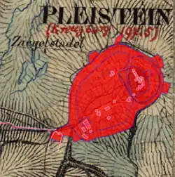 ![]() Stadtansicht von Pleystein nach Matthäus Merian | ||