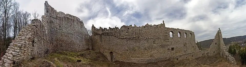 ![]() Burg Rumburg – Gesamtansicht über den Halsgraben | ||