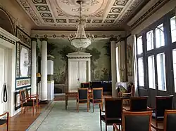 Der Rittersaal im Schloss ist im Stil der Neugotik gestaltet. Im so genannten Schinkelsaal des Schlosses befinden sich Tapetenmalereien mit Blumen- und Tierbildern sowie zwei Kachelöfen nach Entwürfen von Karl Friedrich Schinkel. In weiteren Räumlichkeiten (Eingangshalle, Treppenhaus, Gartensaal, Galerien) sind klassizistische Wandmalereien erhalten.