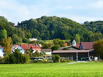 ![]() Bergsporn, auf dem die Burg Schweinhausen stand | ||