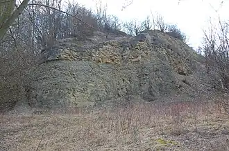 ![]() Stenderberg bei Ostheim: Nordspitze mit ehemaligem Steinbruch und Burgstelle | ||