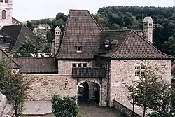 Im Süden der Burg liegt am Luciaweg der untere Torbau mit hofseitigem Wehrgang und einem sich daran anschließenden, kleinen Innenhof, von dem das so genannte Burghaus erreichbar ist. Bei diesem handelt es sich um ein zweiflügeliges Gebäude, das erst zu Beginn des 20. Jahrhunderts errichtet wurde. Es besitzt zwei Geschosse, deren Fassade hofseitig aus Fachwerk besteht.