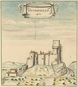 Im Zusammenhang mit einem Bertrand de Tournoël wurde der Name Tournoël erstmals im 10. Jahrhundert erwähnt.[1] Die Dokumente geben aber keine Auskunft über die Burg zu jener Zeit; eventuell handelte es sich um einen Wachtturm aus Holz.[2]