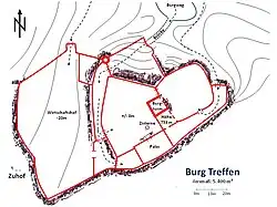 Skizze Burg Treffen (Kärnten) Blick aus Osten.