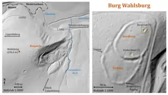 ![]() Reliefdaten und Kennzeichnung der Reste der Burg Wahlsburg | ||