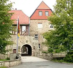 ![]() Innenhof der Burg Warberg mit Bergfried | ||