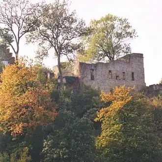 | Erhaltungszustand | Bergfried, Mauerreste des Palas |